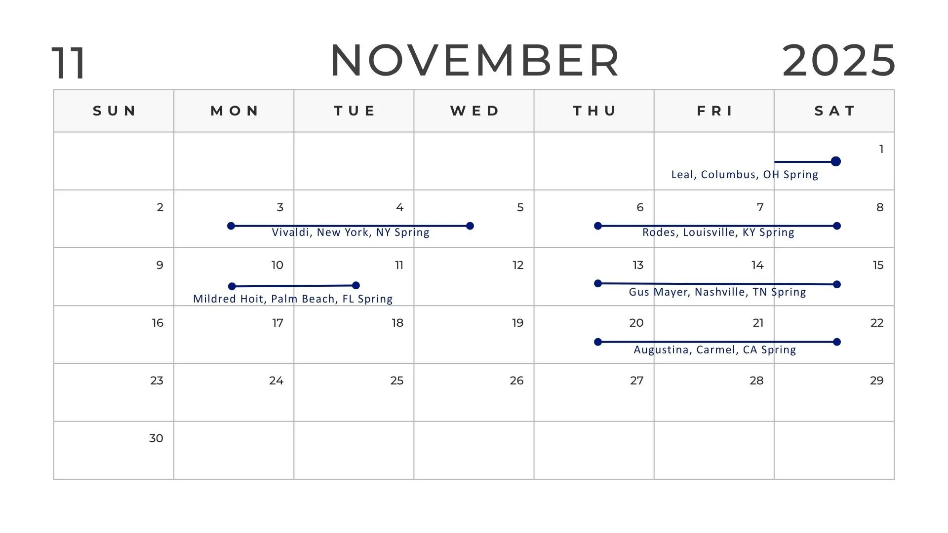Locate a trunk show in your area and join us in person. At the trunk show you can view our samples and design your dream selections, all made to order, of course.